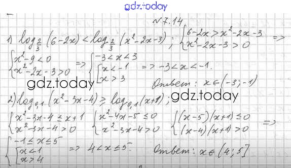 На страницах сайта gdz.today вы найдете учебный и вспомогательный материал, направленный на улучшения знаний школьной программы. ГДЗ - онлайн мир знаний ГДЗ. §7 7.14 Учебнику по Алгебре для 11 класса Мерзляк, Номировский Базовый и профильный уровни Вентана-граф Алгоритм успеха 2017