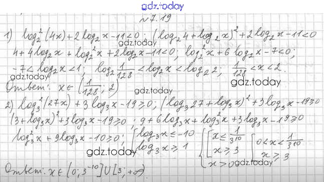 Ответы к ГДЗ. §7 7.19 Учебнику по Алгебре для 11 класса Мерзляк, Номировский Базовый и профильный уровни Вентана-граф Алгоритм успеха 2017