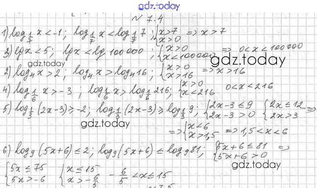 На страницах сайта gdz.today вы найдете учебный и вспомогательный материал, направленный на улучшения знаний школьной программы. ГДЗ - онлайн мир знаний ГДЗ. §7 7.4 Учебнику по Алгебре для 11 класса Мерзляк, Номировский Базовый и профильный уровни Вентана-граф Алгоритм успеха 2017