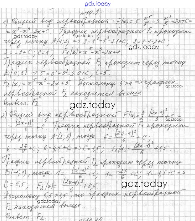 Ответы к ГДЗ. §10 10.9 Учебнику по Алгебре для 11 класса Мерзляк, Номировский Базовый и профильный уровни Вентана-граф Алгоритм успеха 2017