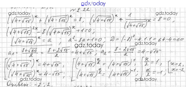 Ответы к Решение к §2 2.22 Учебнику по Алгебре для 11 класса Мерзляк, Номировский Углубленный уровень Вентана-граф Алгоритм успеха 2019