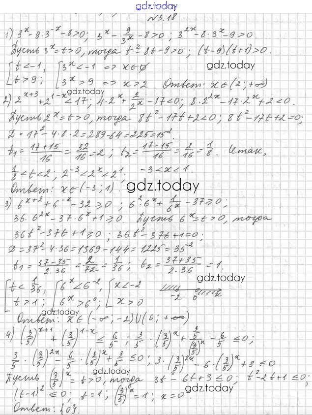 На страницах сайта gdz.today вы найдете учебный и вспомогательный материал, направленный на улучшения знаний школьной программы. ГДЗ - онлайн мир знаний Решение к §3 3.18 Учебнику по Алгебре для 11 класса Мерзляк, Номировский Углубленный уровень Вентана-граф Алгоритм успеха 2019