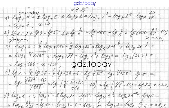 Ответы к Решение к §4 4.25 Учебнику по Алгебре для 11 класса Мерзляк, Номировский Углубленный уровень Вентана-граф Алгоритм успеха 2019
