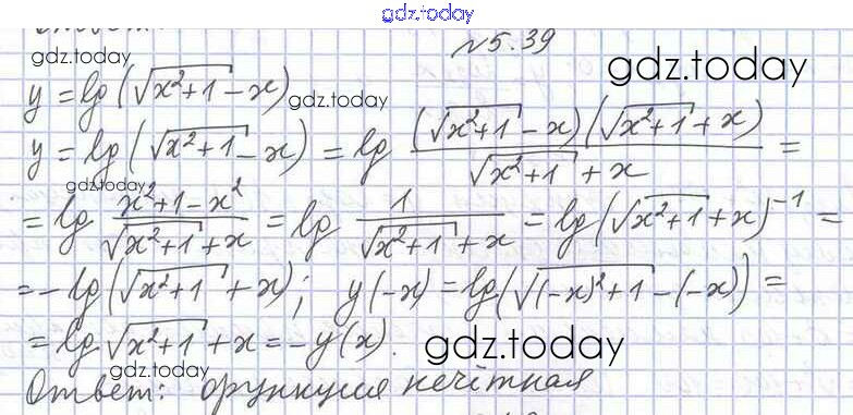 На страницах сайта gdz.today вы найдете учебный и вспомогательный материал, направленный на улучшения знаний школьной программы. ГДЗ - онлайн мир знаний Решение к §5 5.39 Учебнику по Алгебре для 11 класса Мерзляк, Номировский Углубленный уровень Вентана-граф Алгоритм успеха 2019