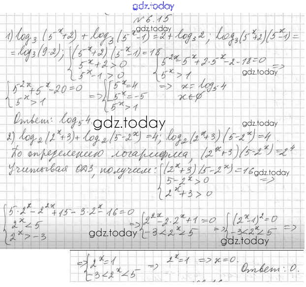 На страницах сайта gdz.today вы найдете учебный и вспомогательный материал, направленный на улучшения знаний школьной программы. ГДЗ - онлайн мир знаний Решение к §6 6.15 Учебнику по Алгебре для 11 класса Мерзляк, Номировский Углубленный уровень Вентана-граф Алгоритм успеха 2019