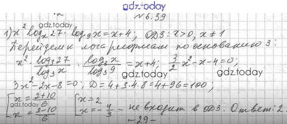 Ответы к Решение к §6 6.39 Учебнику по Алгебре для 11 класса Мерзляк, Номировский Углубленный уровень Вентана-граф Алгоритм успеха 2019