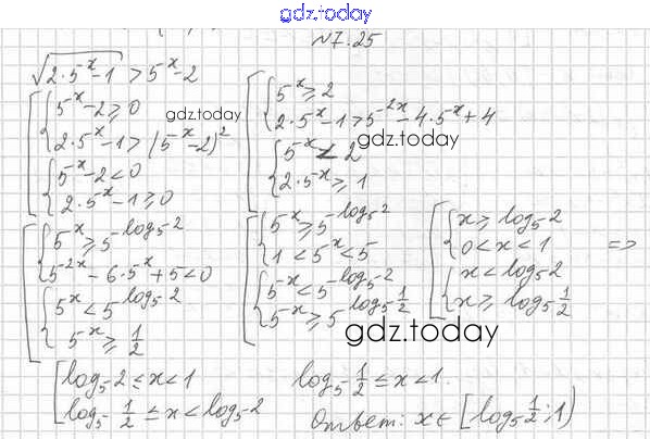 Ответы к Решение к §7 7.25 Учебнику по Алгебре для 11 класса Мерзляк, Номировский Углубленный уровень Вентана-граф Алгоритм успеха 2019