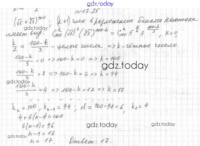 Ответы к Решение к §17 17.25 Учебнику по Алгебре для 11 класса Мерзляк, Номировский Углубленный уровень Вентана-граф Алгоритм успеха 2019