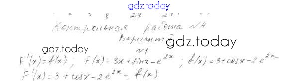 На страницах сайта gdz.today вы найдете учебный и вспомогательный материал, направленный на улучшения знаний школьной программы. ГДЗ - онлайн мир знаний Контрольная работа 4 Решение к главе 10. Интеграл Вариант-1 Дидактическим материалам по Алгебре для 11 класса Шабунин, Газарян Базовый уровень Просвещение 2013