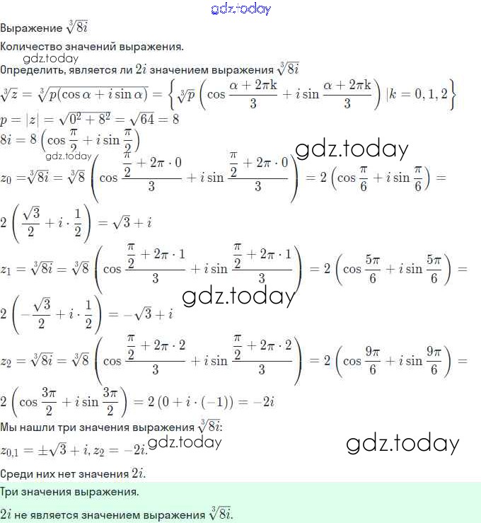 Ответы к Решение. §10. Извлечение корней из комплексных чисел 3 Учебнику по Алгебре для 11 класса Мордкович, Семёнов Базовый и углубленный уровень Мнемозина 2017
