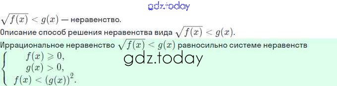 На страницах сайта gdz.today вы найдете учебный и вспомогательный материал, направленный на улучшения знаний школьной программы. ГДЗ - онлайн мир знаний Решение. §30. Иррациональные уравнения и неравенства 1 Учебнику по Алгебре для 11 класса Мордкович, Семёнов Базовый и углубленный уровень Мнемозина 2017