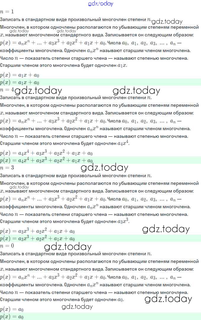 На страницах сайта gdz.today вы найдете учебный и вспомогательный материал, направленный на улучшения знаний школьной программы. ГДЗ - онлайн мир знаний Решение. §1. Многочлены от одной переменной 1.2 Задачнику по Алгебре для 11 класса Мордкович, Семёнов Базовый и углубленный уровень Мнемозина 2017