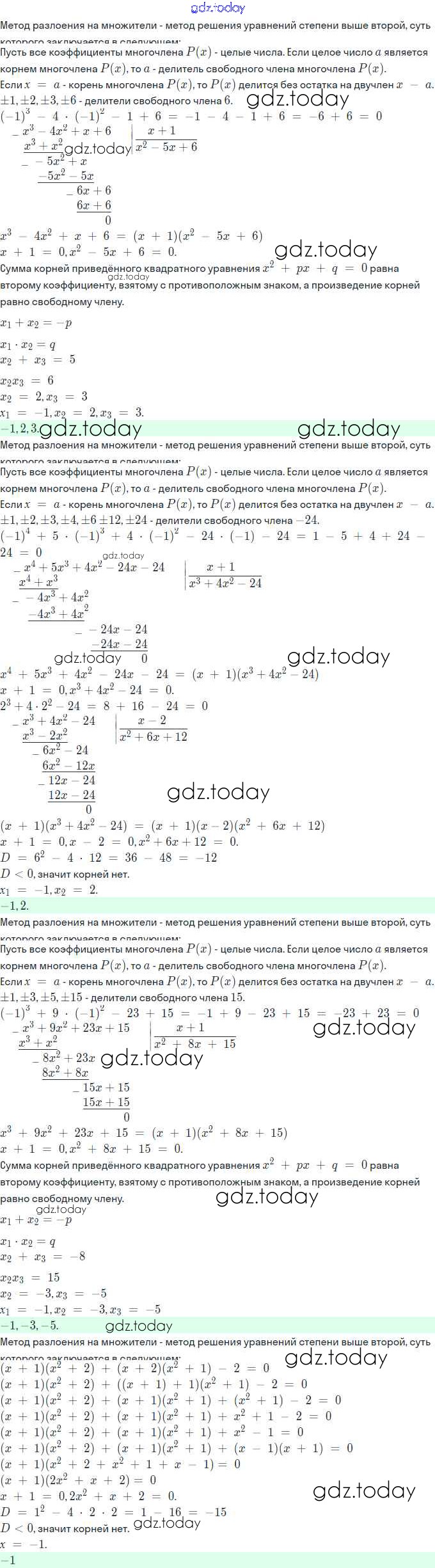 Ответы к Решение. §3. Уравнения высших степеней 3.22 Задачнику по Алгебре для 11 класса Мордкович, Семёнов Базовый и углубленный уровень Мнемозина 2017