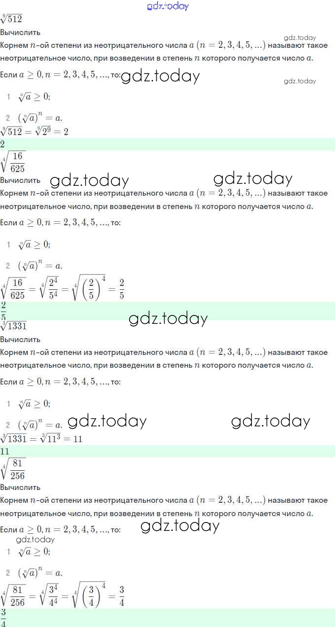 Ответы к Решение. §4. Понятие корня n-й степени из действительного числа 4.7 Задачнику по Алгебре для 11 класса Мордкович, Семёнов Базовый и углубленный уровень Мнемозина 2017