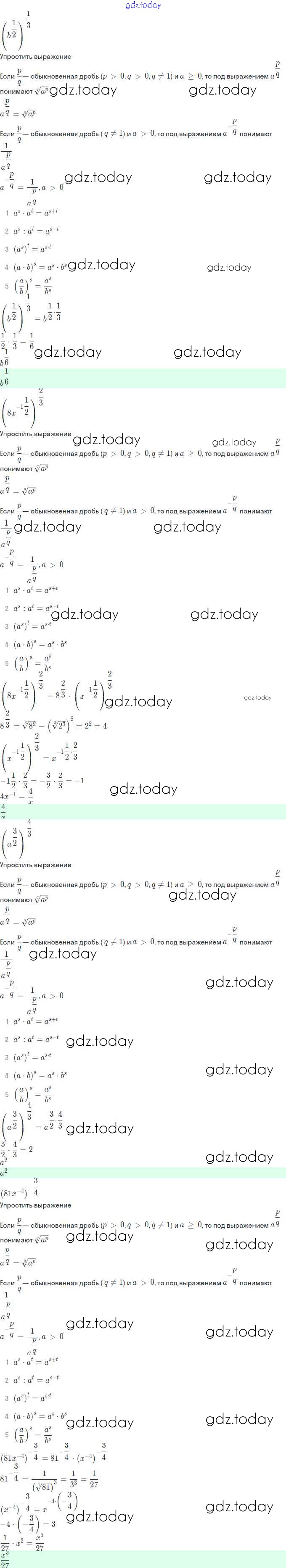Ответы к Решение. §8. Понятие степени с любым рациональным показателем 8.21 Задачнику по Алгебре для 11 класса Мордкович, Семёнов Базовый и углубленный уровень Мнемозина 2017