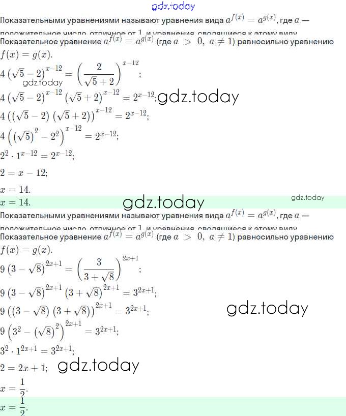 Ответы к Решение. §12. Показательные уравнения 12.16 Задачнику по Алгебре для 11 класса Мордкович, Семёнов Базовый и углубленный уровень Мнемозина 2017