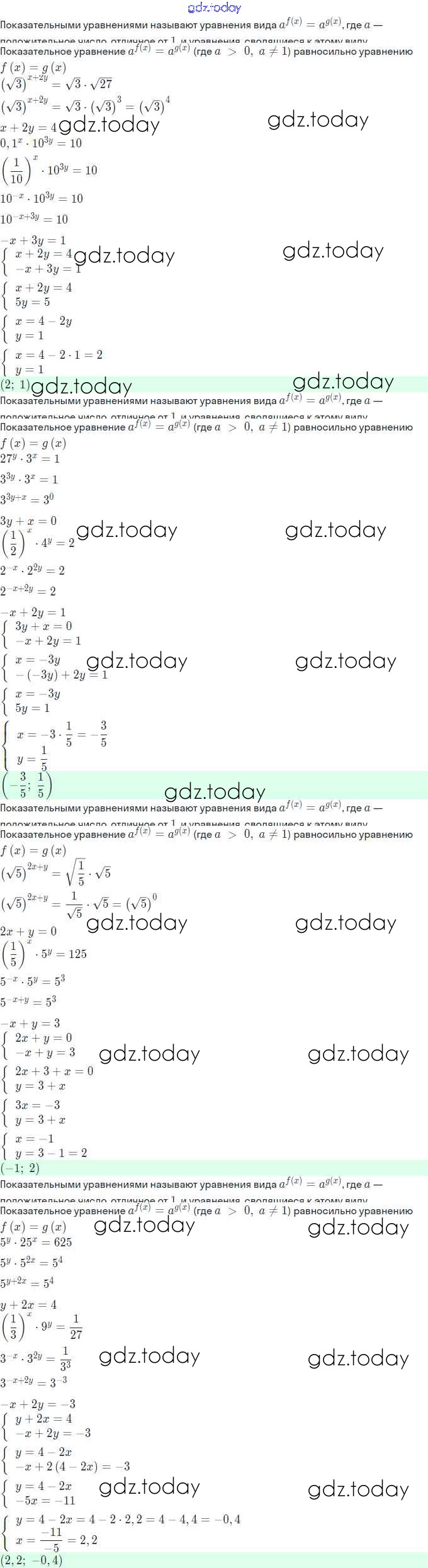 Ответы к Решение. §12. Показательные уравнения 12.45 Задачнику по Алгебре для 11 класса Мордкович, Семёнов Базовый и углубленный уровень Мнемозина 2017