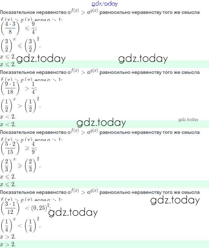 Ответы к Решение. §13. Показательные неравенства 13.11 Задачнику по Алгебре для 11 класса Мордкович, Семёнов Базовый и углубленный уровень Мнемозина 2017