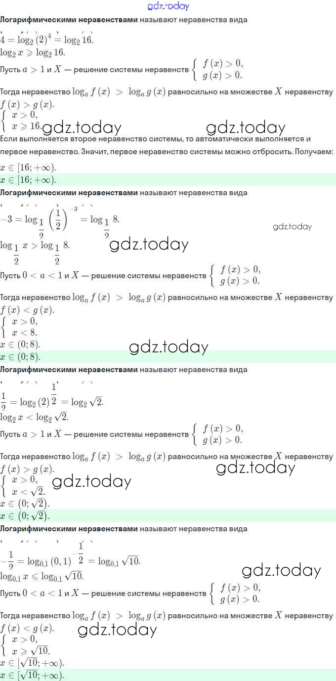 На страницах сайта gdz.today вы найдете учебный и вспомогательный материал, направленный на улучшения знаний школьной программы. ГДЗ - онлайн мир знаний Решение. §18. Логарифмические неравенства 18.1 Задачнику по Алгебре для 11 класса Мордкович, Семёнов Базовый и углубленный уровень Мнемозина 2017