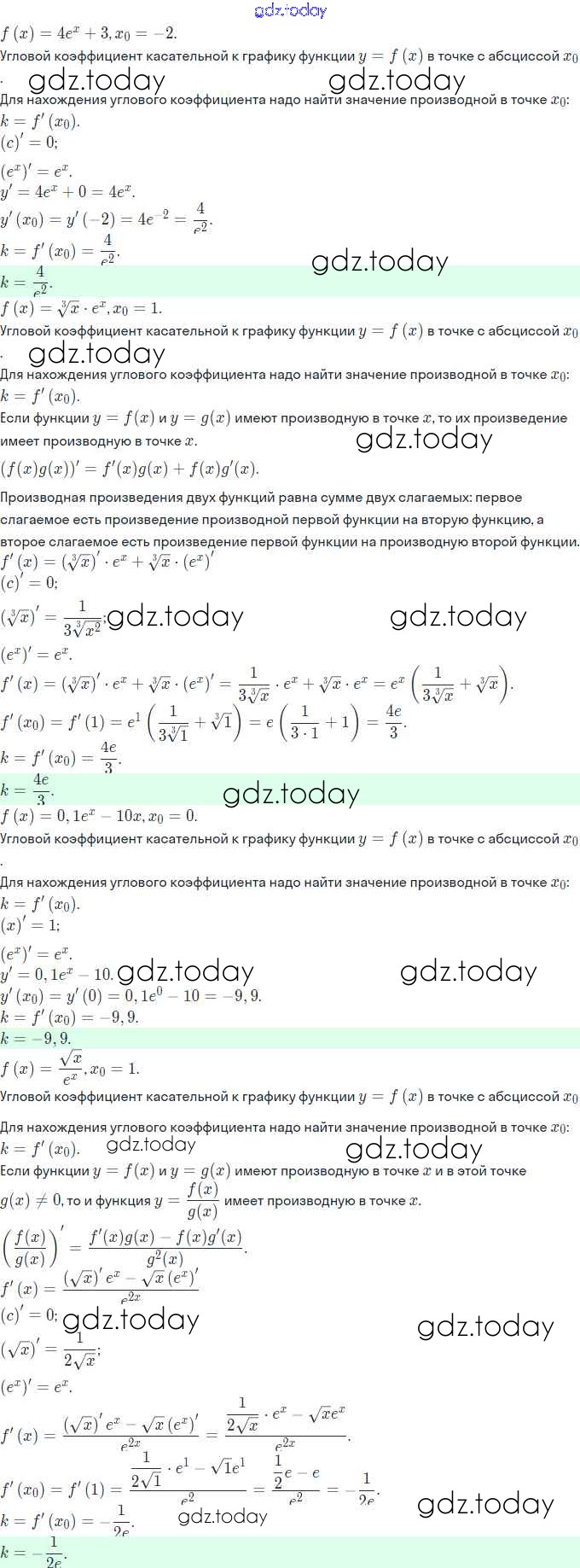 Ответы к Решение. §19. Дифференцирование показательной и логарифмической функций 19.7 Задачнику по Алгебре для 11 класса Мордкович, Семёнов Базовый и углубленный уровень Мнемозина 2017