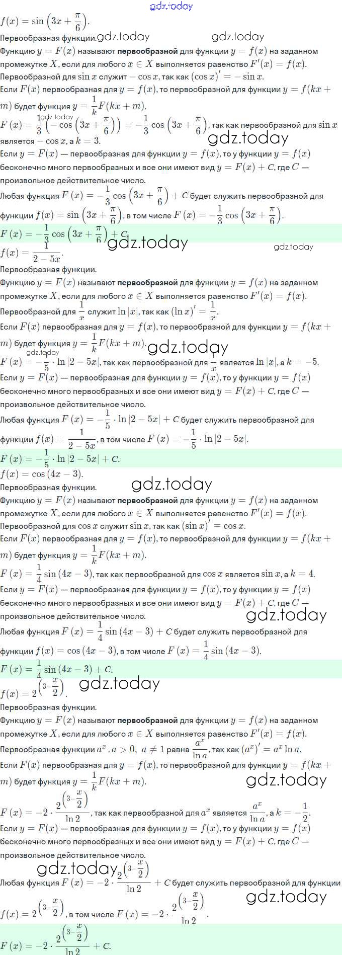 На страницах сайта gdz.today вы найдете учебный и вспомогательный материал, направленный на улучшения знаний школьной программы. ГДЗ - онлайн мир знаний Решение. §20. Первообразная и неопределённый интеграл 20.13 Задачнику по Алгебре для 11 класса Мордкович, Семёнов Базовый и углубленный уровень Мнемозина 2017