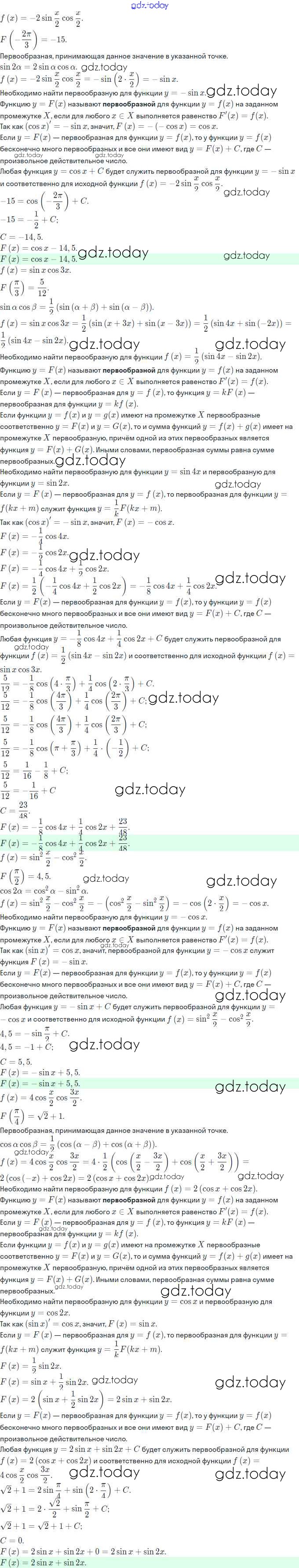 Ответы к Решение. §20. Первообразная и неопределённый интеграл 20.26 Задачнику по Алгебре для 11 класса Мордкович, Семёнов Базовый и углубленный уровень Мнемозина 2017
