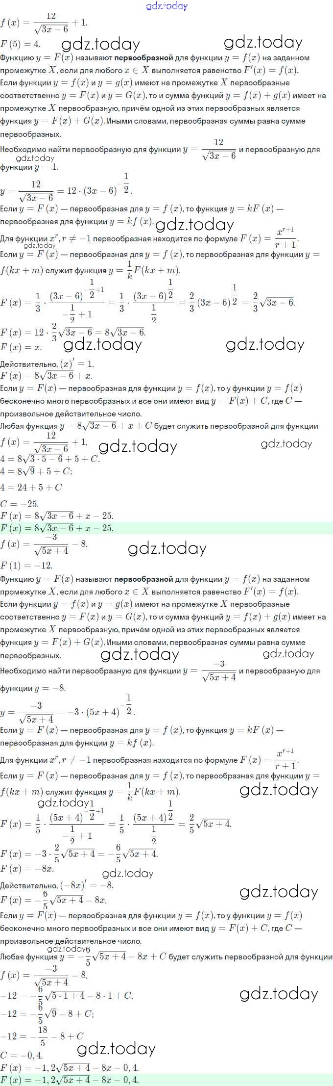 Ответы к Решение. §20. Первообразная и неопределённый интеграл 20.27 Задачнику по Алгебре для 11 класса Мордкович, Семёнов Базовый и углубленный уровень Мнемозина 2017