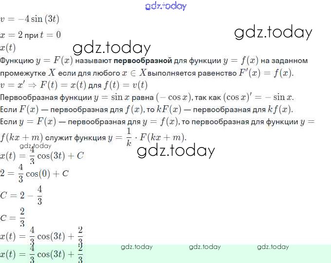 Ответы к Решение. §20. Первообразная и неопределённый интеграл 20.36 Задачнику по Алгебре для 11 класса Мордкович, Семёнов Базовый и углубленный уровень Мнемозина 2017