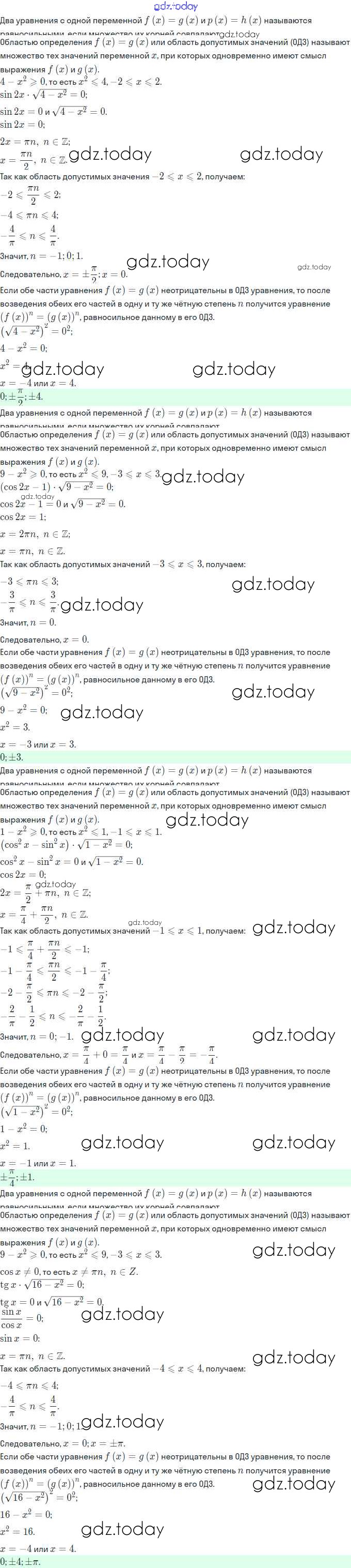 Ответы к Решение. §26. Равносильность уравнений 26.15 Задачнику по Алгебре для 11 класса Мордкович, Семёнов Базовый и углубленный уровень Мнемозина 2017