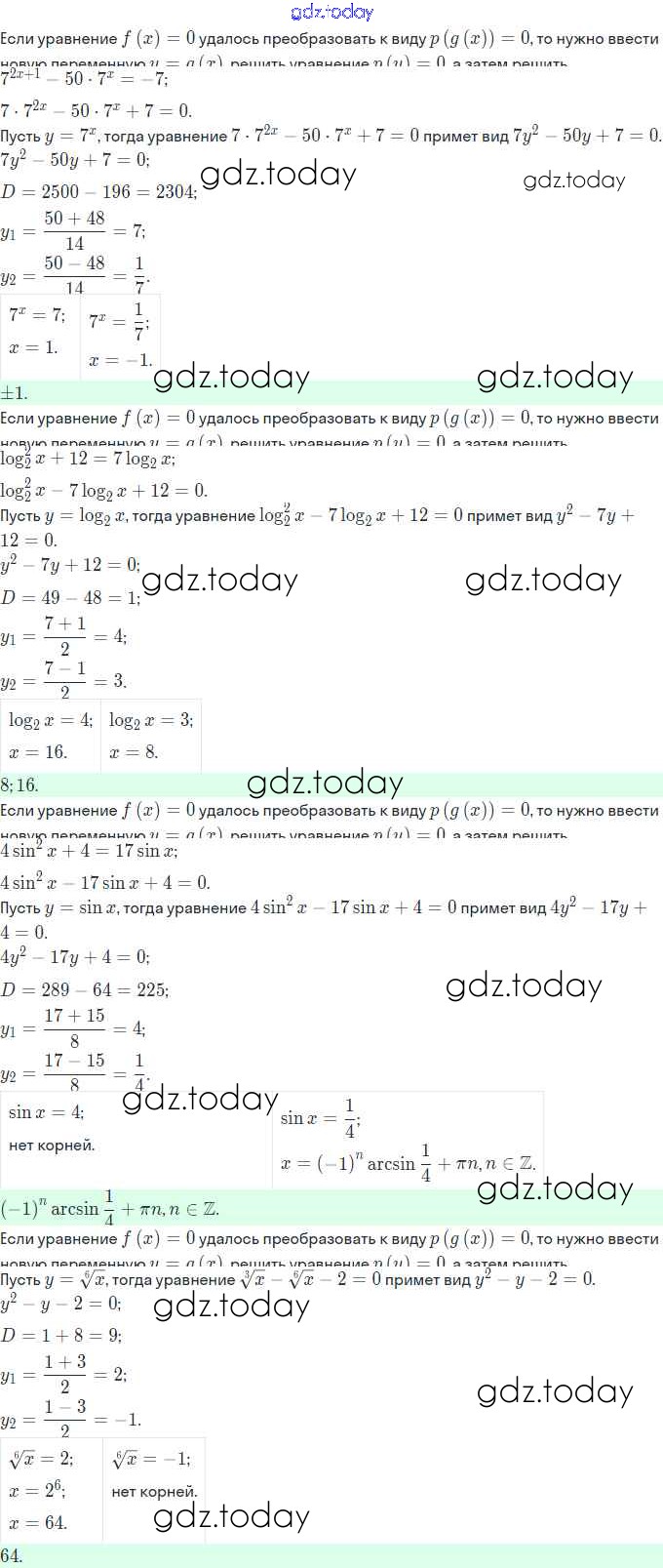 Ответы к Решение. §27. Общие методы решения уравнений 27.19 Задачнику по Алгебре для 11 класса Мордкович, Семёнов Базовый и углубленный уровень Мнемозина 2017
