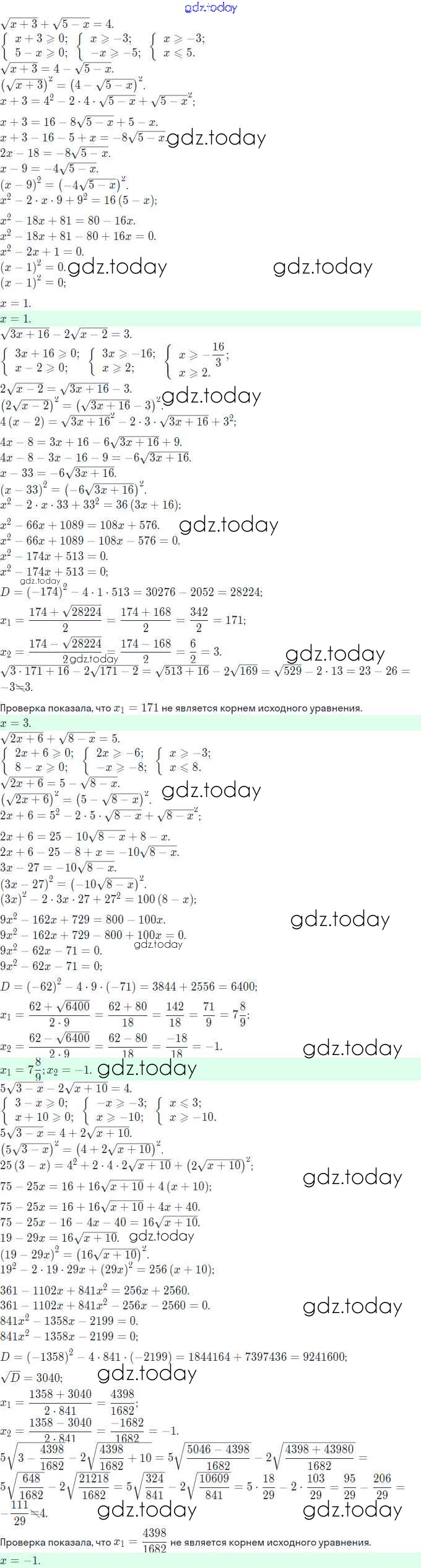 Ответы к Решение. §30. Иррациональные уравнения и неравенства 30.16 Задачнику по Алгебре для 11 класса Мордкович, Семёнов Базовый и углубленный уровень Мнемозина 2017