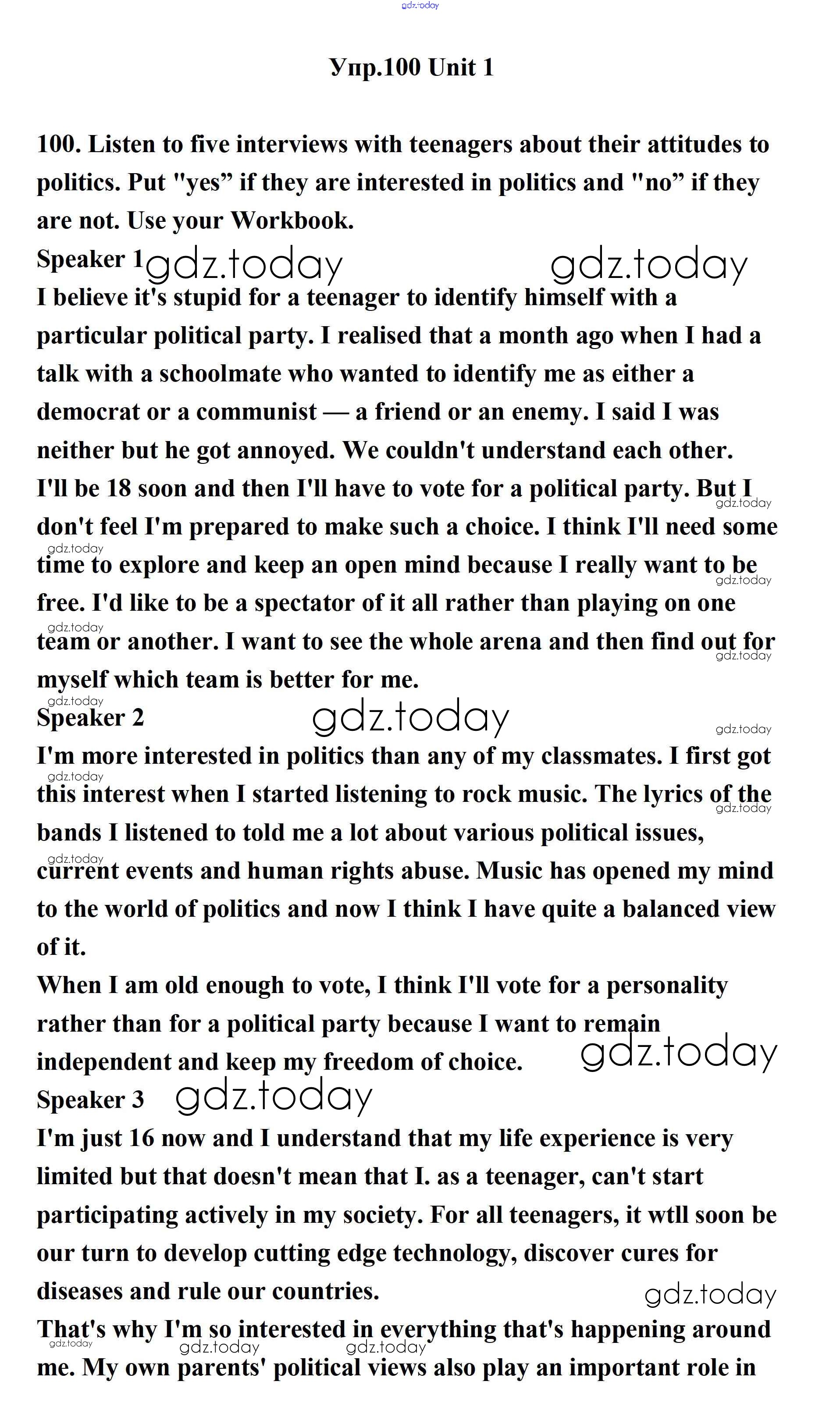 На страницах сайта gdz.today вы найдете учебный и вспомогательный материал, направленный на улучшения знаний школьной программы. ГДЗ - онлайн мир знаний Решение. Unit 1. Young People in Society  100 Учебнику по Английскому языку для 11 класса Биболетова, Бабушис  Дрофа Enjoy English 2017