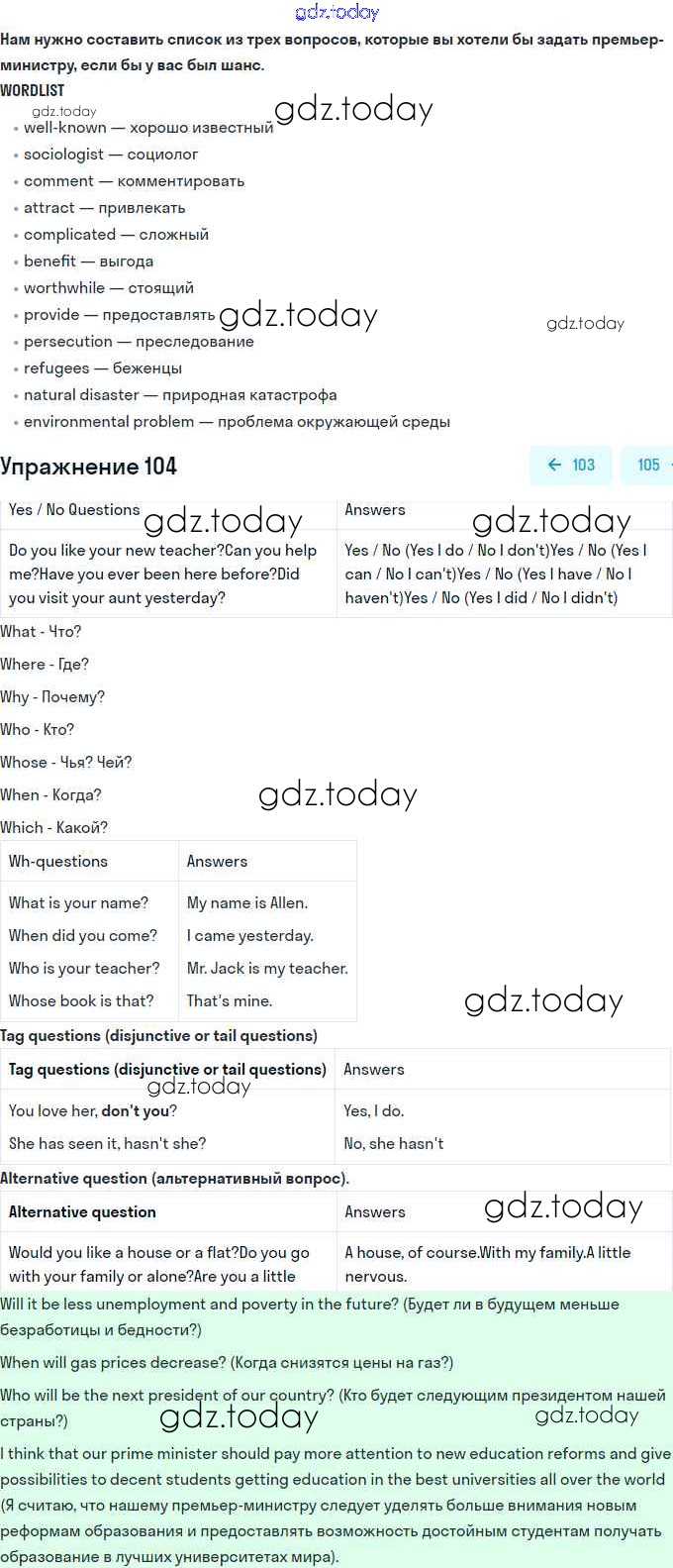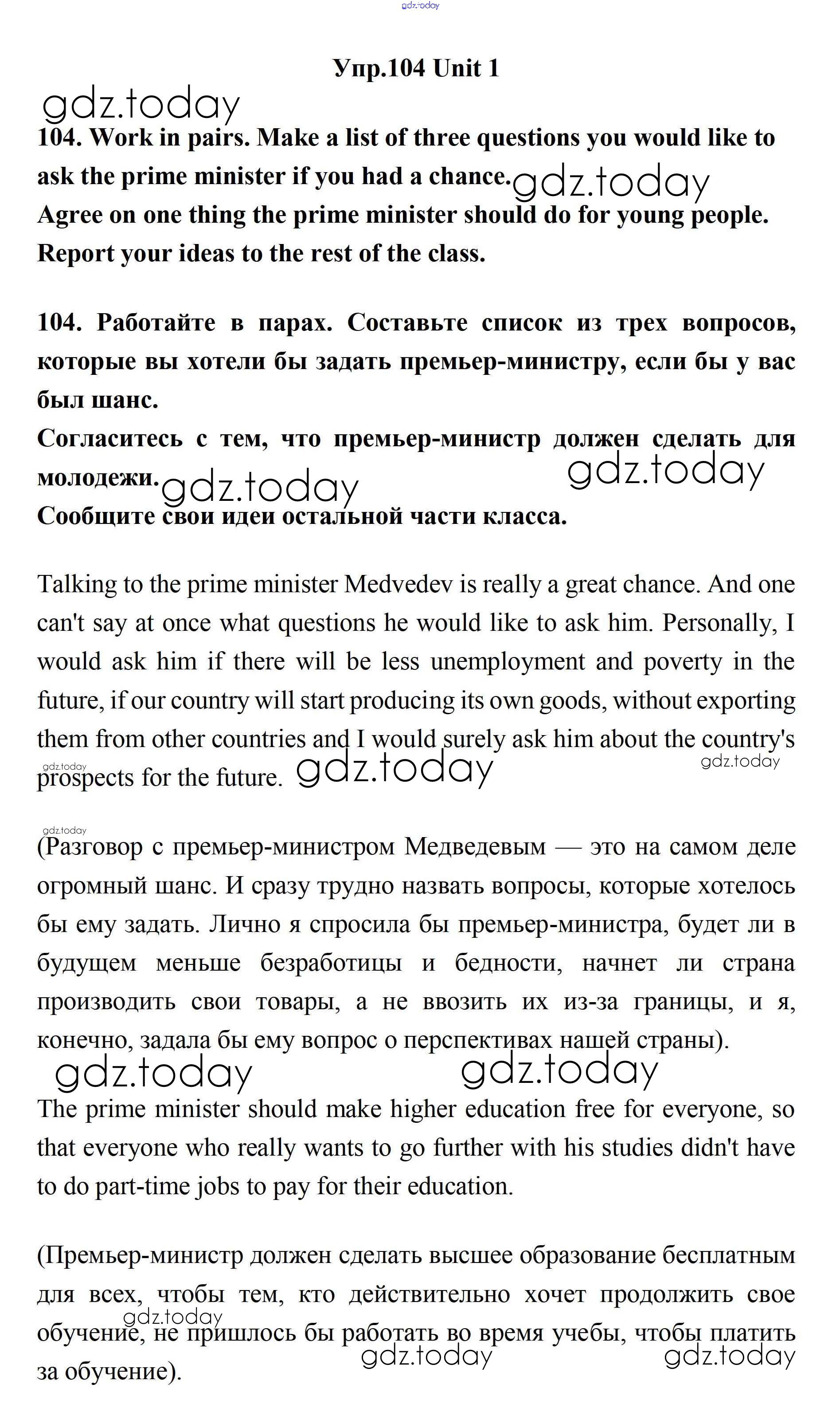 На страницах сайта gdz.today вы найдете учебный и вспомогательный материал, направленный на улучшения знаний школьной программы. ГДЗ - онлайн мир знаний Решение. Unit 1. Young People in Society  104 Учебнику по Английскому языку для 11 класса Биболетова, Бабушис  Дрофа Enjoy English 2017