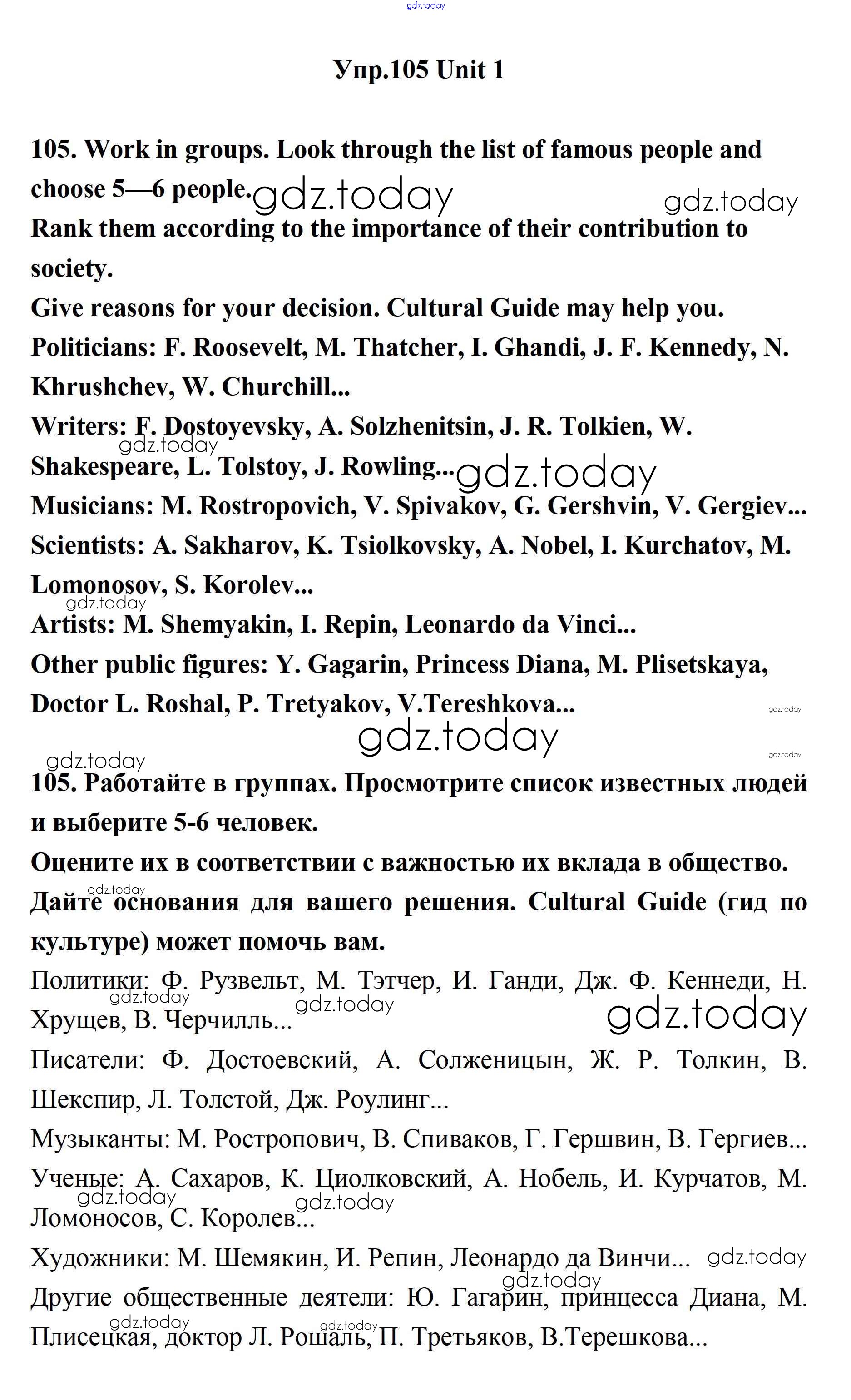 На страницах сайта gdz.today вы найдете учебный и вспомогательный материал, направленный на улучшения знаний школьной программы. ГДЗ - онлайн мир знаний Решение. Unit 1. Young People in Society  105 Учебнику по Английскому языку для 11 класса Биболетова, Бабушис  Дрофа Enjoy English 2017