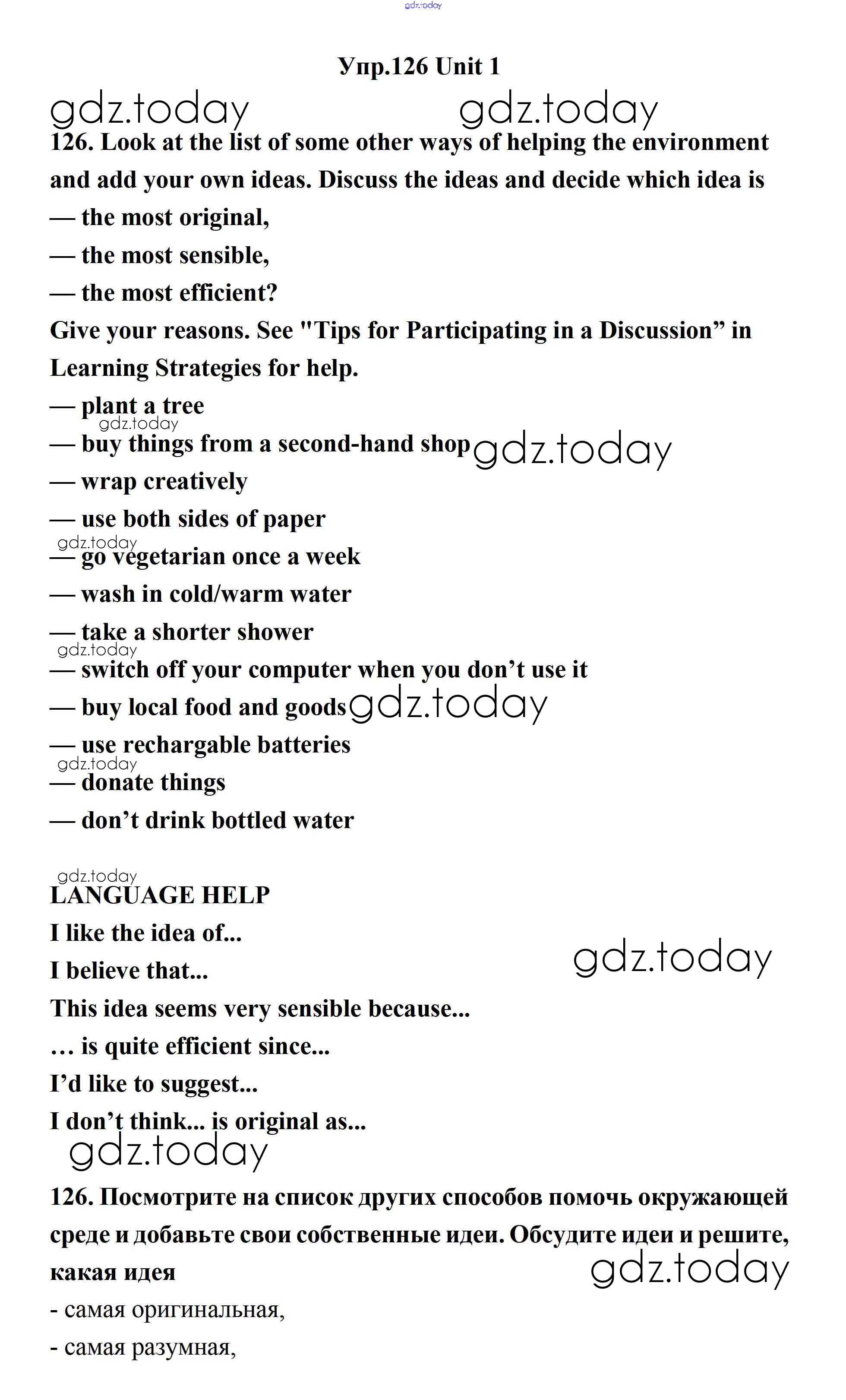 На страницах сайта gdz.today вы найдете учебный и вспомогательный материал, направленный на улучшения знаний школьной программы. ГДЗ - онлайн мир знаний Решение. Unit 1. Young People in Society  126 Учебнику по Английскому языку для 11 класса Биболетова, Бабушис  Дрофа Enjoy English 2017