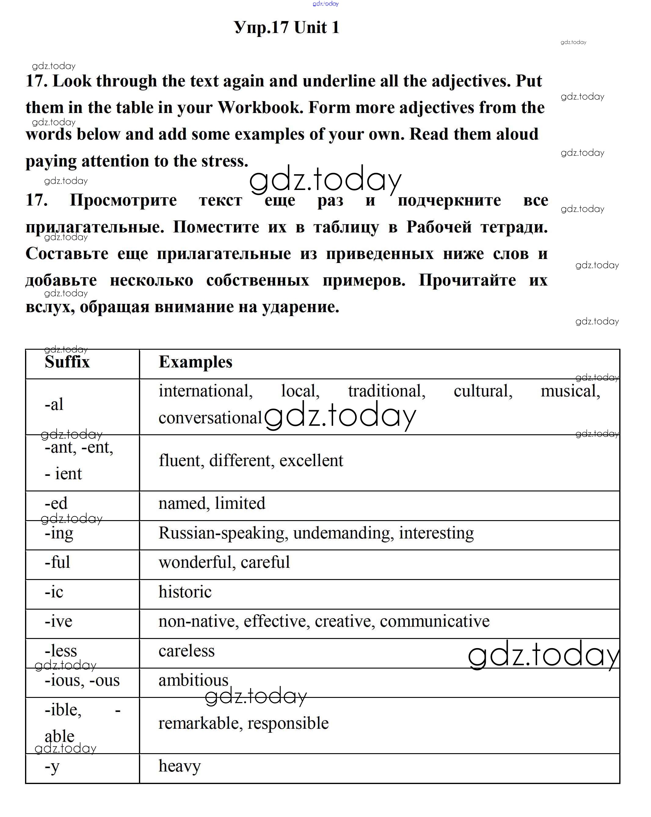 На страницах сайта gdz.today вы найдете учебный и вспомогательный материал, направленный на улучшения знаний школьной программы. ГДЗ - онлайн мир знаний Решение. Unit 1. Young People in Society 17 Учебнику по Английскому языку для 11 класса Биболетова, Бабушис Дрофа Enjoy English 2017