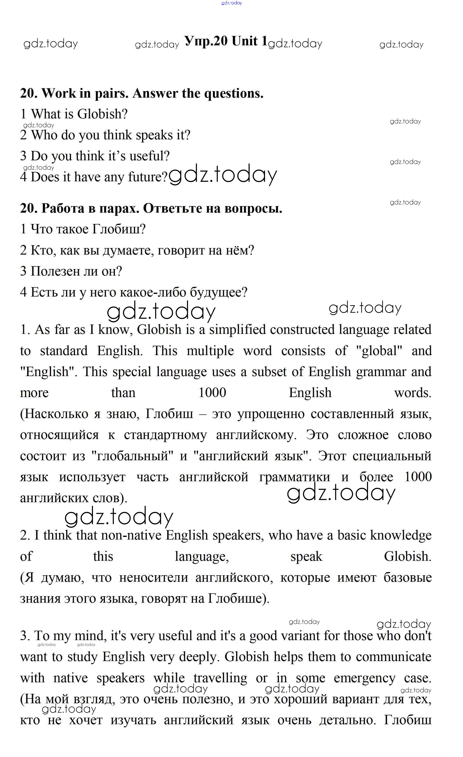 На страницах сайта gdz.today вы найдете учебный и вспомогательный материал, направленный на улучшения знаний школьной программы. ГДЗ - онлайн мир знаний Решение. Unit 1. Young People in Society 20 Учебнику по Английскому языку для 11 класса Биболетова, Бабушис Дрофа Enjoy English 2017