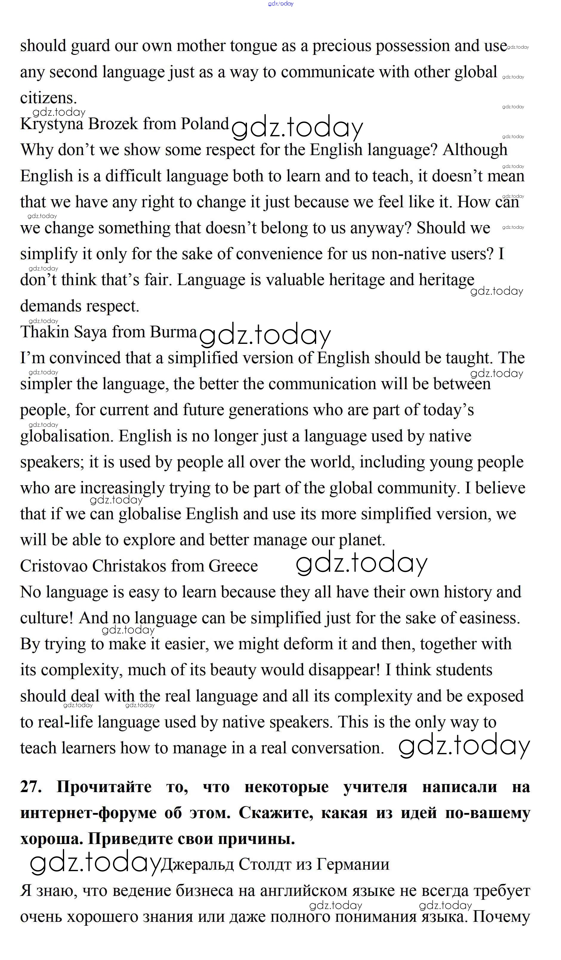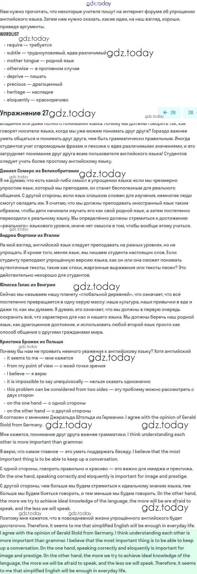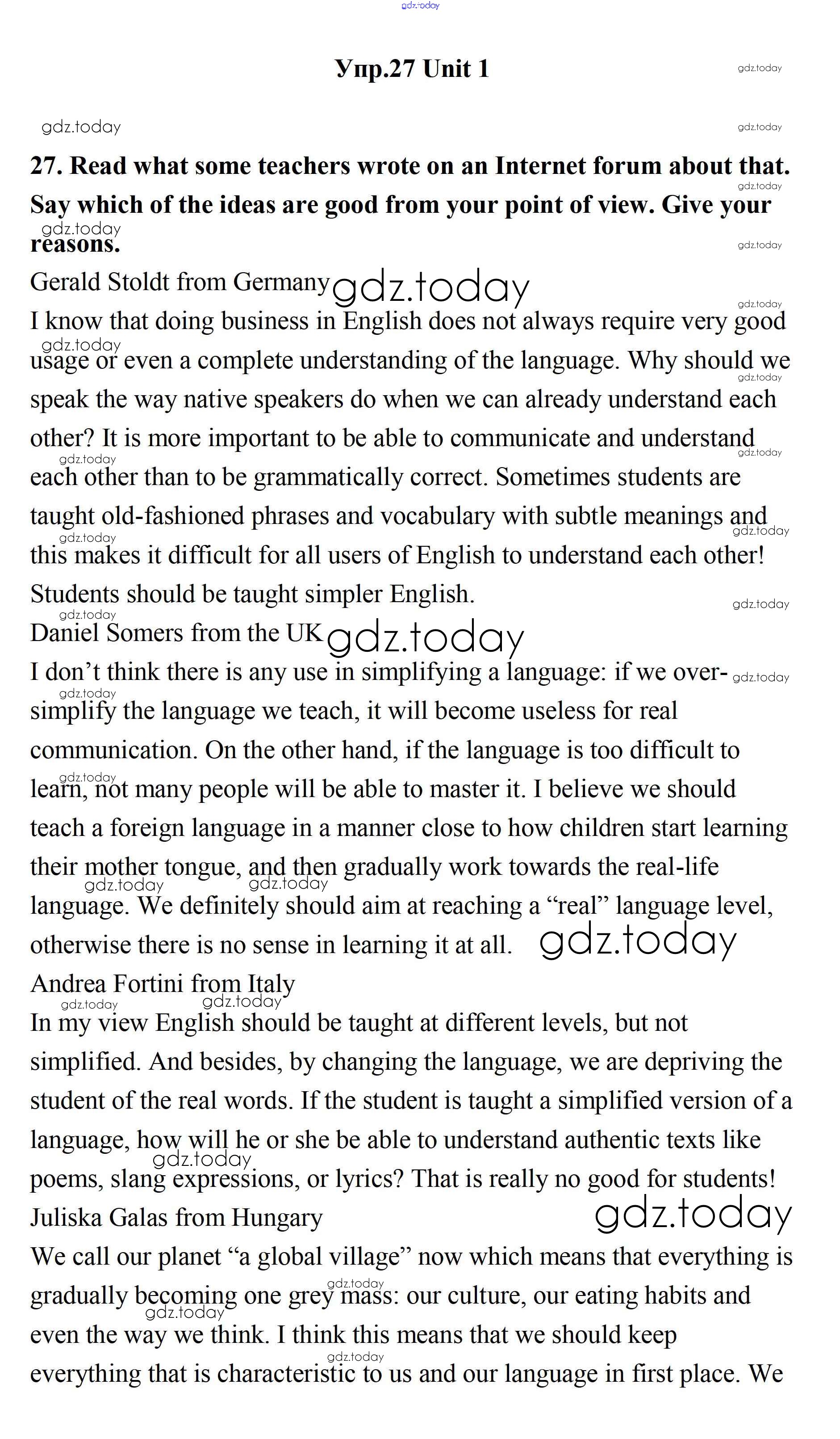 На страницах сайта gdz.today вы найдете учебный и вспомогательный материал, направленный на улучшения знаний школьной программы. ГДЗ - онлайн мир знаний Решение. Unit 1. Young People in Society 27 Учебнику по Английскому языку для 11 класса Биболетова, Бабушис Дрофа Enjoy English 2017