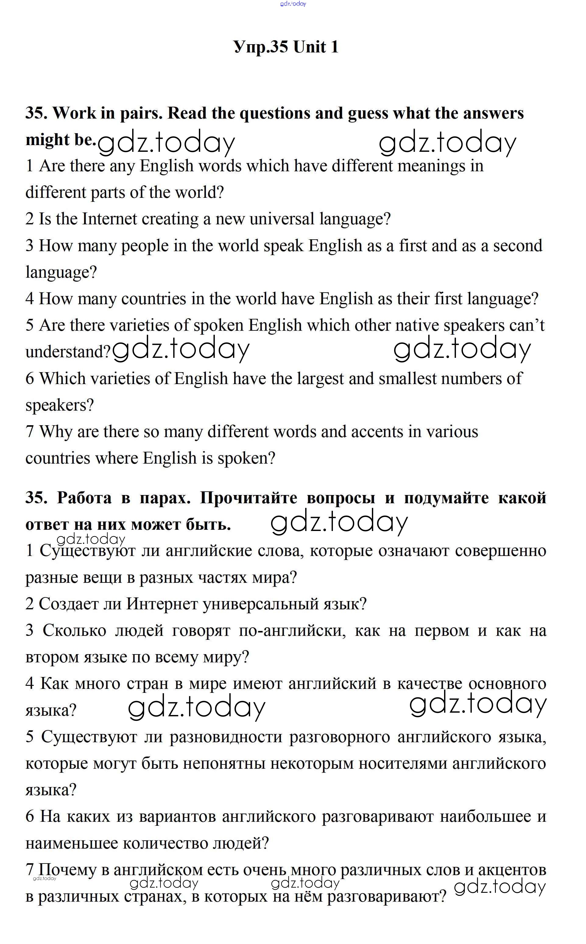 На страницах сайта gdz.today вы найдете учебный и вспомогательный материал, направленный на улучшения знаний школьной программы. ГДЗ - онлайн мир знаний Решение. Unit 1. Young People in Society 35 Учебнику по Английскому языку для 11 класса Биболетова, Бабушис Дрофа Enjoy English 2017