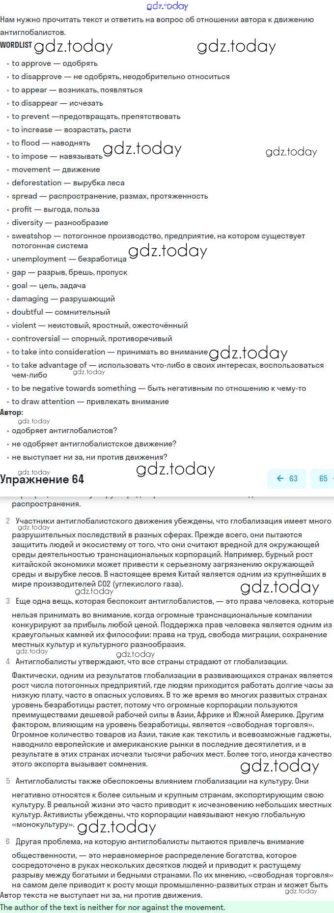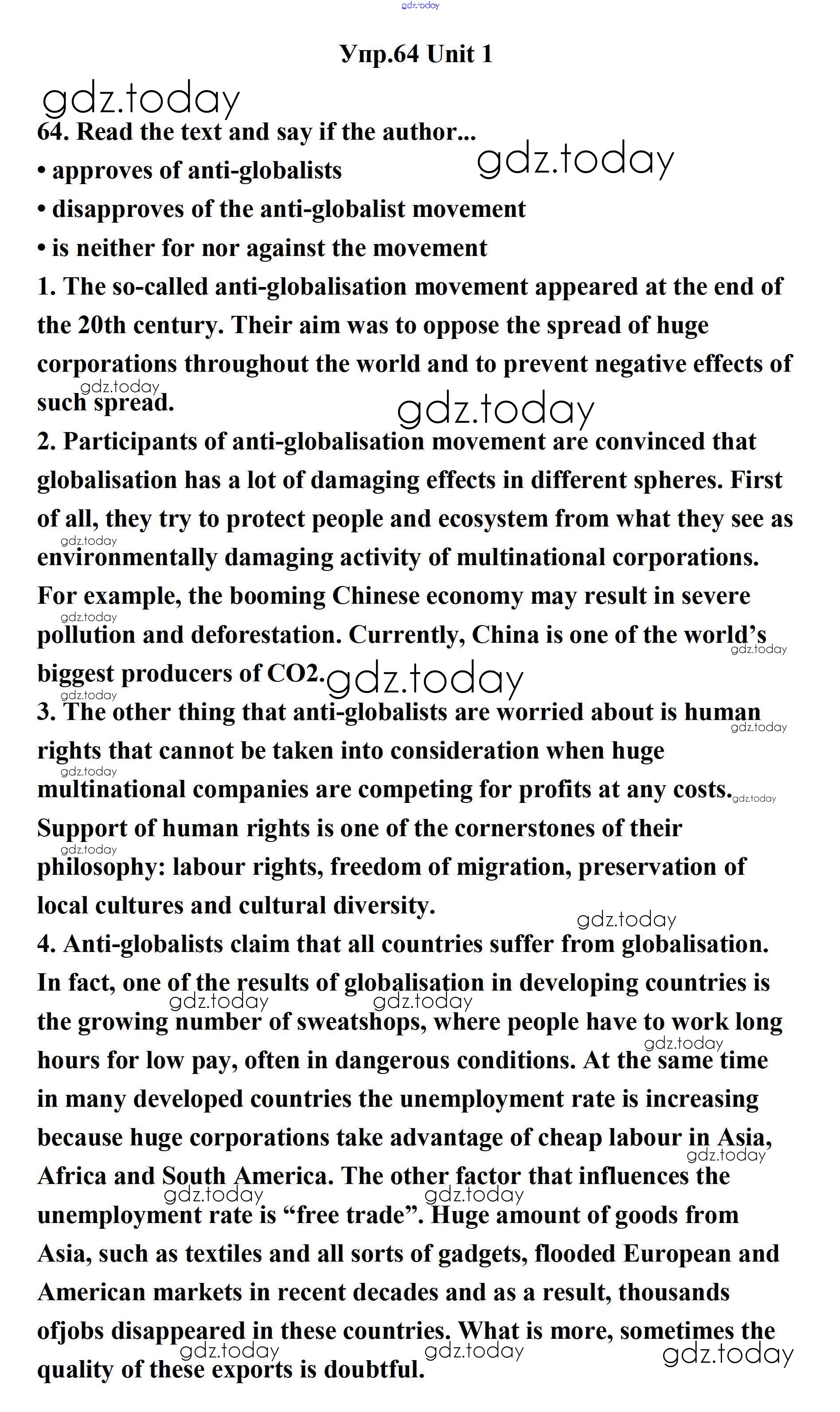 На страницах сайта gdz.today вы найдете учебный и вспомогательный материал, направленный на улучшения знаний школьной программы. ГДЗ - онлайн мир знаний Решение. Unit 1. Young People in Society 64 Учебнику по Английскому языку для 11 класса Биболетова, Бабушис Дрофа Enjoy English 2017