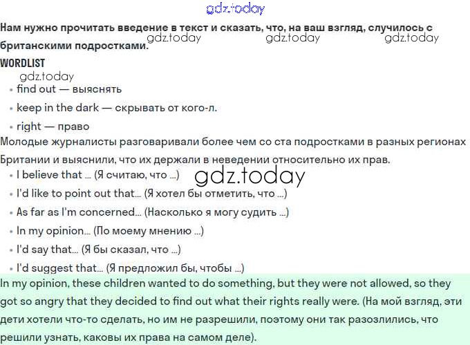 На страницах сайта gdz.today вы найдете учебный и вспомогательный материал, направленный на улучшения знаний школьной программы. ГДЗ - онлайн мир знаний Решение. Unit 1. Young People in Society  82 Учебнику по Английскому языку для 11 класса Биболетова, Бабушис  Дрофа Enjoy English 2017