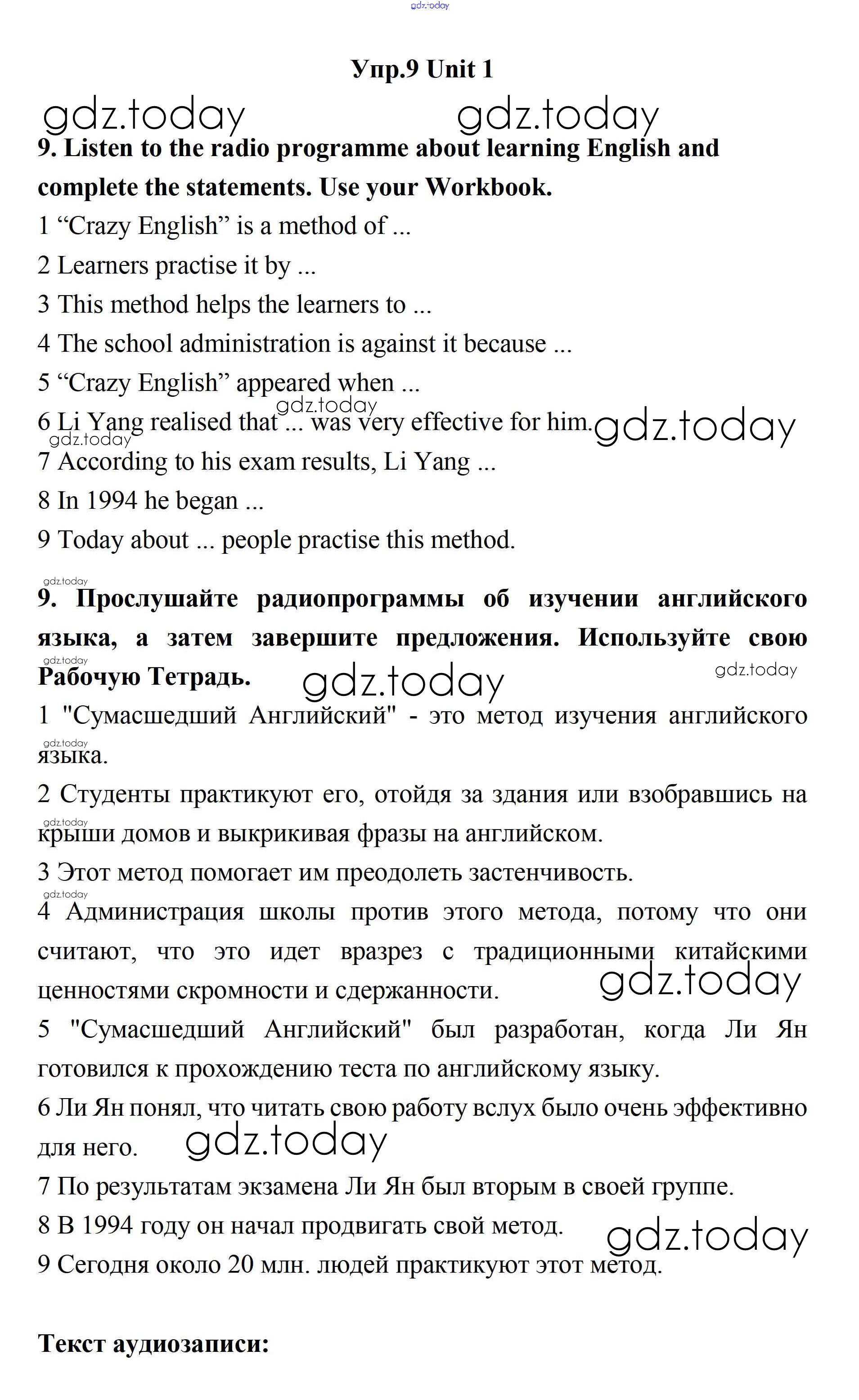 На страницах сайта gdz.today вы найдете учебный и вспомогательный материал, направленный на улучшения знаний школьной программы. ГДЗ - онлайн мир знаний Решение. Unit 1. Young People in Society 9 Учебнику по Английскому языку для 11 класса Биболетова, Бабушис Дрофа Enjoy English 2017