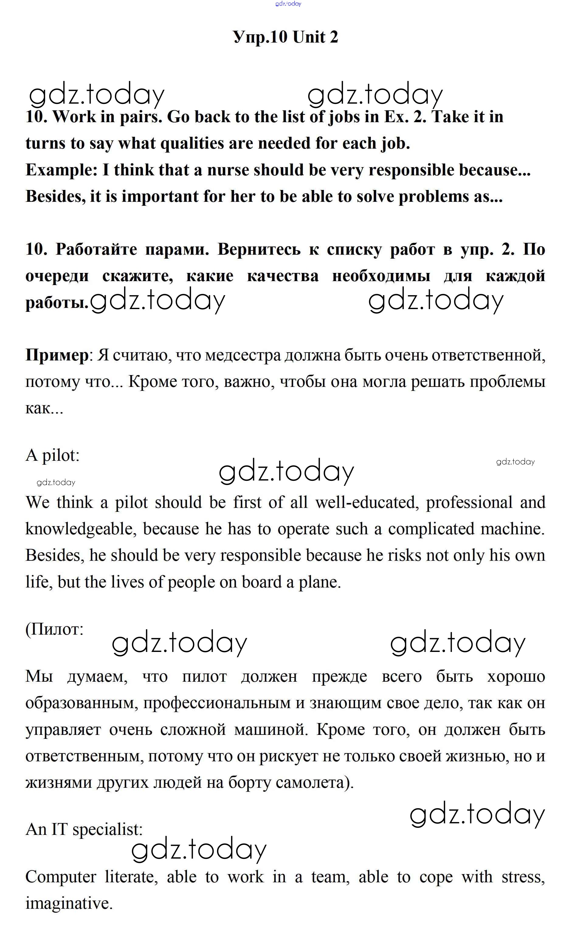 На страницах сайта gdz.today вы найдете учебный и вспомогательный материал, направленный на улучшения знаний школьной программы. ГДЗ - онлайн мир знаний Решение. Unit 2. Your Dream Job 10 Учебнику по Английскому языку для 11 класса Биболетова, Бабушис Дрофа Enjoy English 2017
