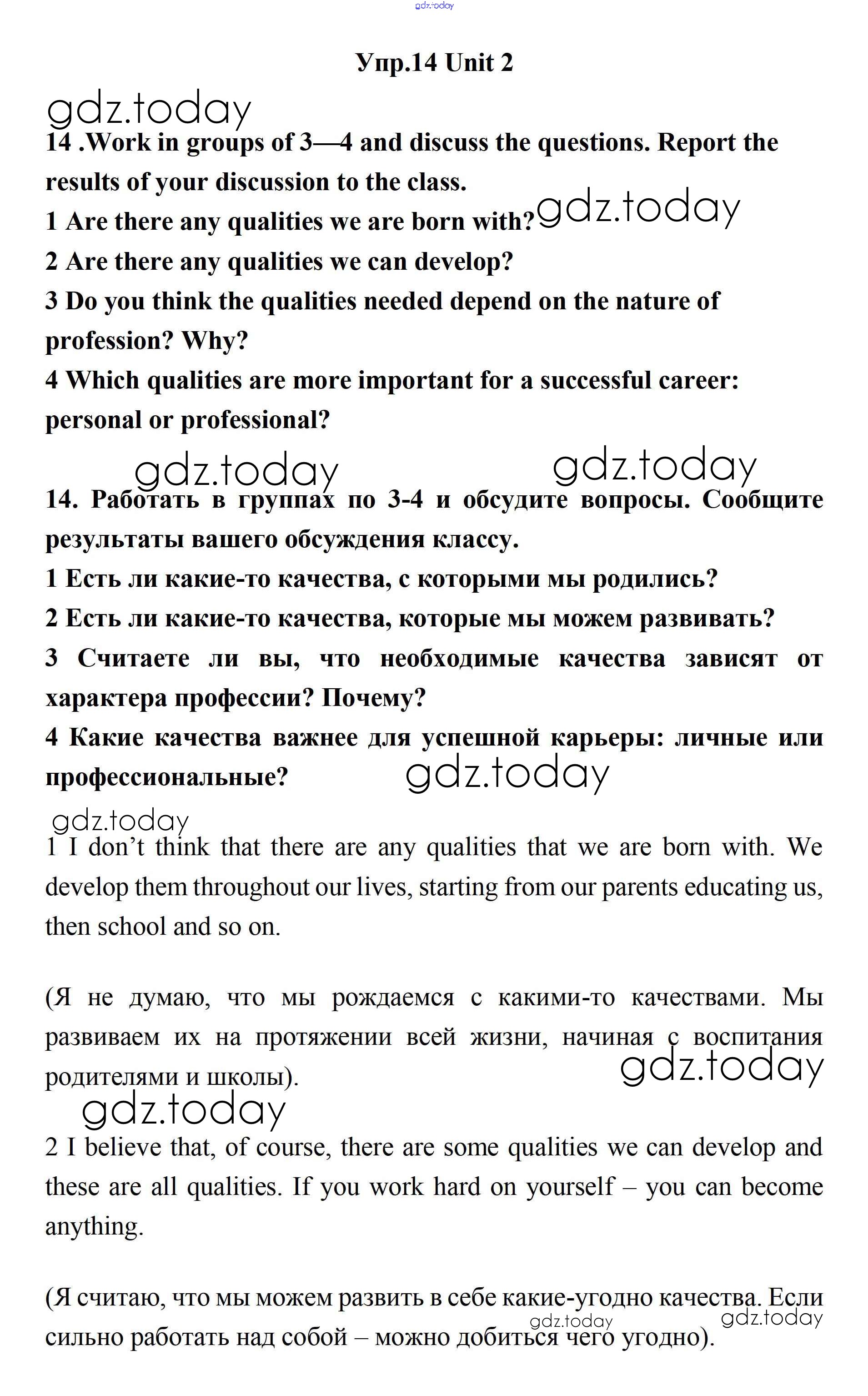 На страницах сайта gdz.today вы найдете учебный и вспомогательный материал, направленный на улучшения знаний школьной программы. ГДЗ - онлайн мир знаний Решение. Unit 2. Your Dream Job  14 Учебнику по Английскому языку для 11 класса Биболетова, Бабушис  Дрофа Enjoy English 2017