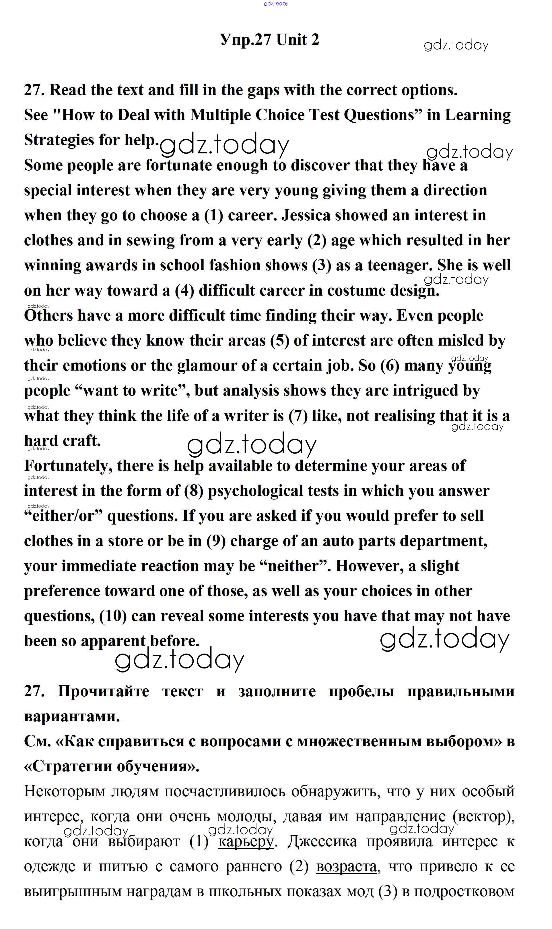 На страницах сайта gdz.today вы найдете учебный и вспомогательный материал, направленный на улучшения знаний школьной программы. ГДЗ - онлайн мир знаний Решение. Unit 2. Your Dream Job 27 Учебнику по Английскому языку для 11 класса Биболетова, Бабушис Дрофа Enjoy English 2017