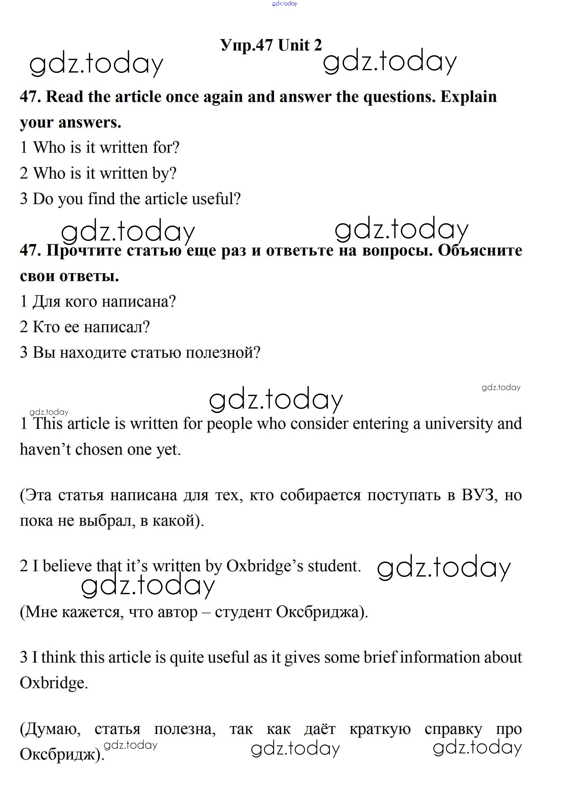 На страницах сайта gdz.today вы найдете учебный и вспомогательный материал, направленный на улучшения знаний школьной программы. ГДЗ - онлайн мир знаний Решение. Unit 2. Your Dream Job  47 Учебнику по Английскому языку для 11 класса Биболетова, Бабушис  Дрофа Enjoy English 2017