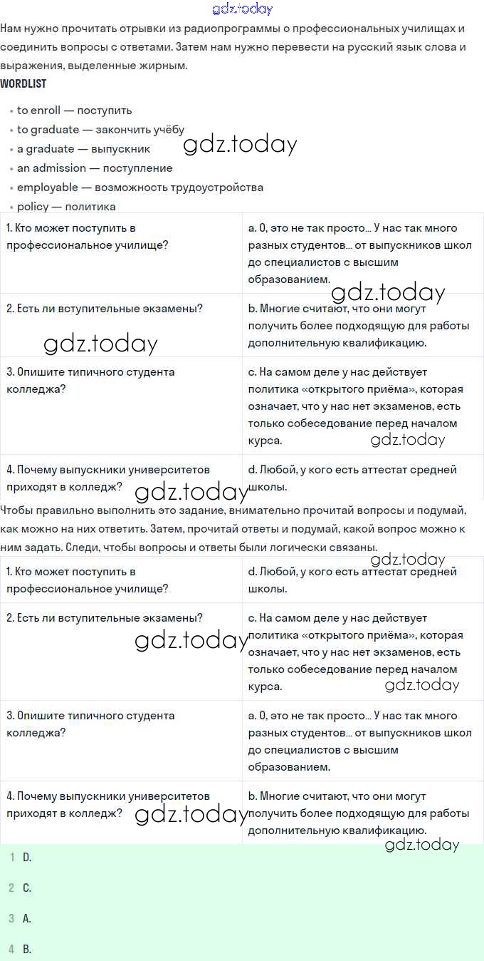 На страницах сайта gdz.today вы найдете учебный и вспомогательный материал, направленный на улучшения знаний школьной программы. ГДЗ - онлайн мир знаний Решение. Unit 2. Your Dream Job 57 Учебнику по Английскому языку для 11 класса Биболетова, Бабушис Дрофа Enjoy English 2017