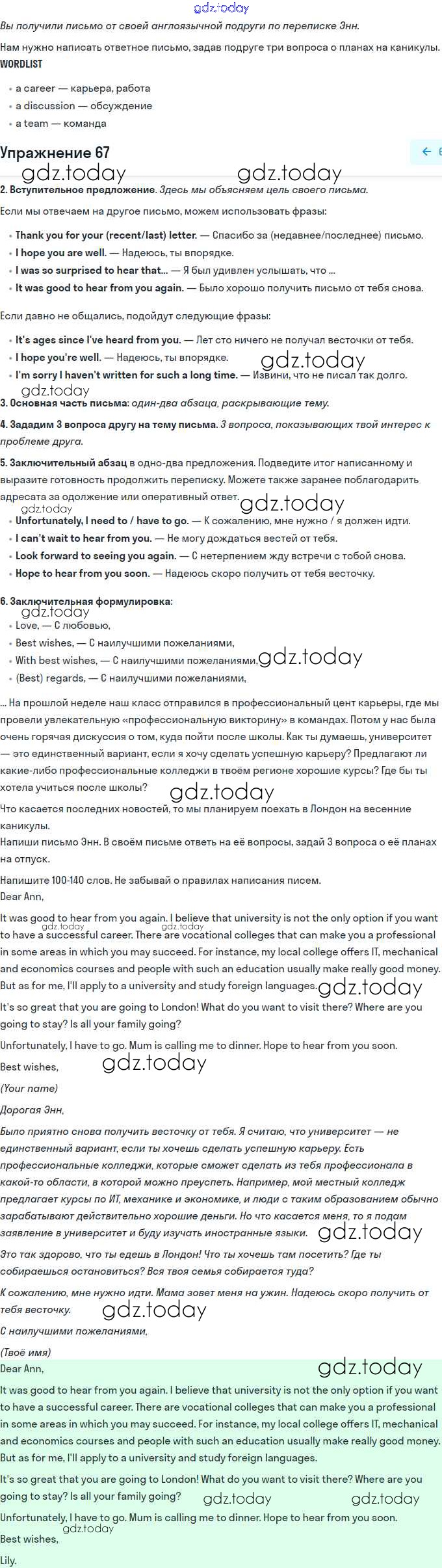 На страницах сайта gdz.today вы найдете учебный и вспомогательный материал, направленный на улучшения знаний школьной программы. ГДЗ - онлайн мир знаний Решение. Unit 2. Your Dream Job 67 Учебнику по Английскому языку для 11 класса Биболетова, Бабушис Дрофа Enjoy English 2017