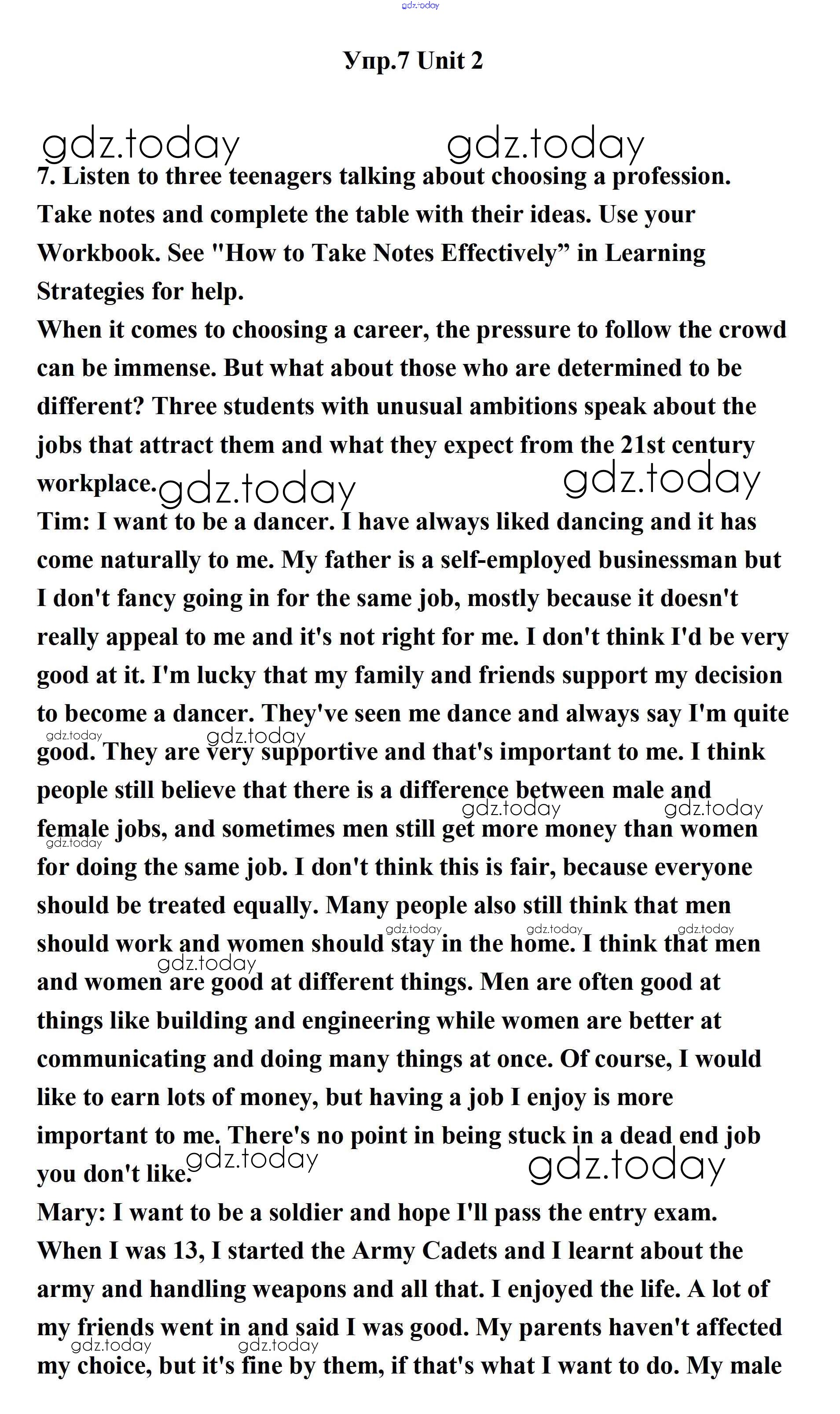 На страницах сайта gdz.today вы найдете учебный и вспомогательный материал, направленный на улучшения знаний школьной программы. ГДЗ - онлайн мир знаний Решение. Unit 2. Your Dream Job 7 Учебнику по Английскому языку для 11 класса Биболетова, Бабушис Дрофа Enjoy English 2017