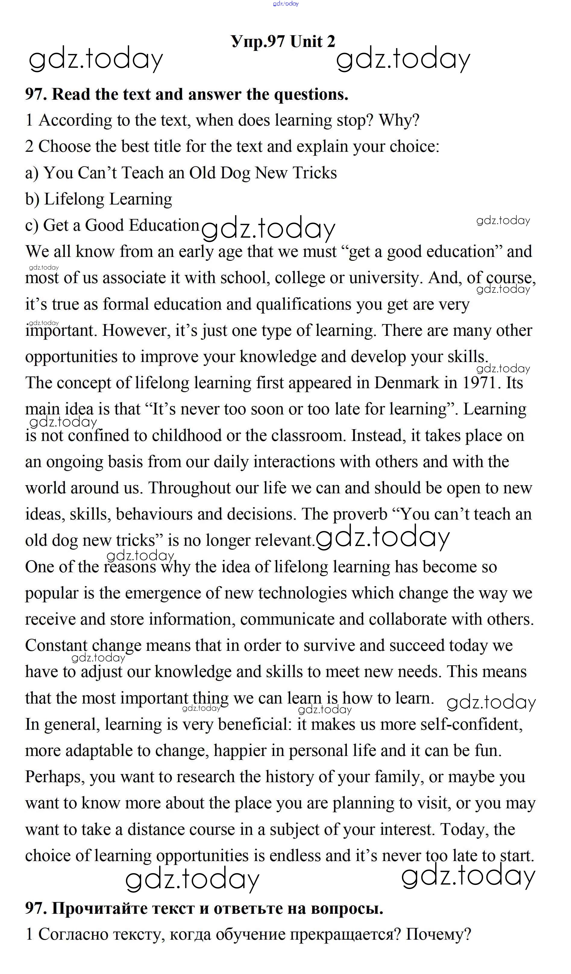 На страницах сайта gdz.today вы найдете учебный и вспомогательный материал, направленный на улучшения знаний школьной программы. ГДЗ - онлайн мир знаний Решение. Unit 2. Your Dream Job 97 Учебнику по Английскому языку для 11 класса Биболетова, Бабушис Дрофа Enjoy English 2017